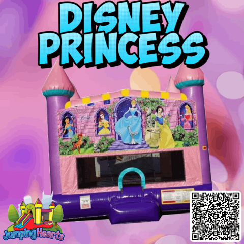 Our enchanting Disney Princess Bounce House Rental is a 15-foot by 15-foot inflatable wonderland that brings the beloved Disney princesses to life! This magical Disney princess bounce house rental is adorned with vibrant graphics showcasing iconic Disney princesses in all their regal splendor, creating a fairytale atmosphere fit for royalty.
